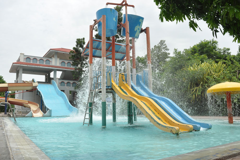 There's the play pool in which people of all ages can splurge and frolic. These pools have mushroom sprayers and water bucket splash that douse you with water from all directions. There are mini family slide and spiral slides that children's can scramble up and down, two water buckets that empties itself when full and little slides that even tiny tots can play with.